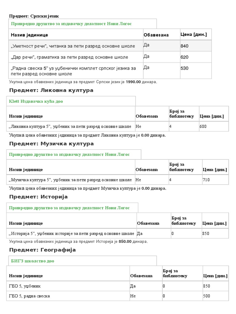 Udzbenici 5 Razred