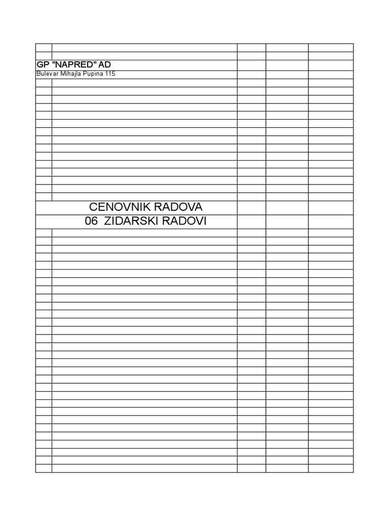 Copy Of Predmer Radova Adaptacija Bulevar Zbirno Xls