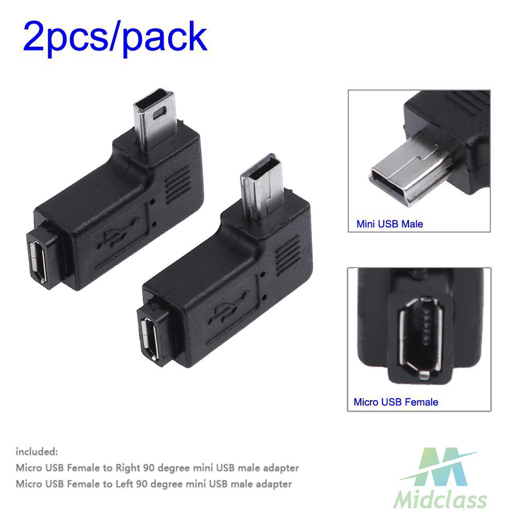 Ms 2pcs Adapter Konektor 90 Derajat Micro Usb Female Ke Mini Usb